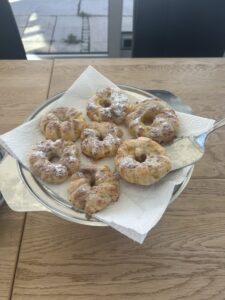 Rausnehmen und mit Puderzucker bestäuben. Warm zu einer Kugel Eis schmecken diese am besten.
