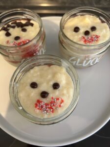 - Aus diesen Zutaten außer Butter und den 5 g Zucker einen Pudding herstellen